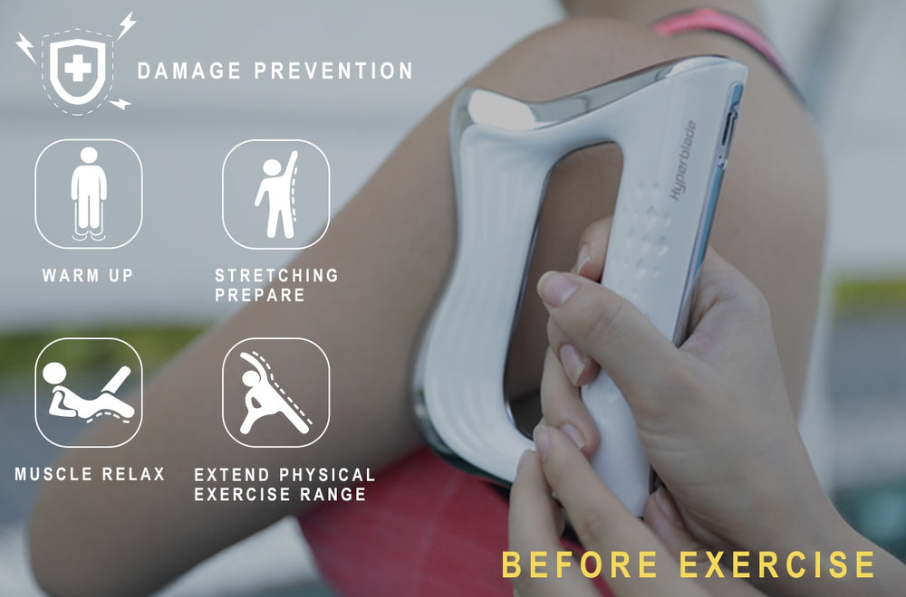 Hyperblade™ massager emits microcurrents (NMES) throughout the muscle to reduce the build-up of lactic acid in order to prevent muscle soreness.